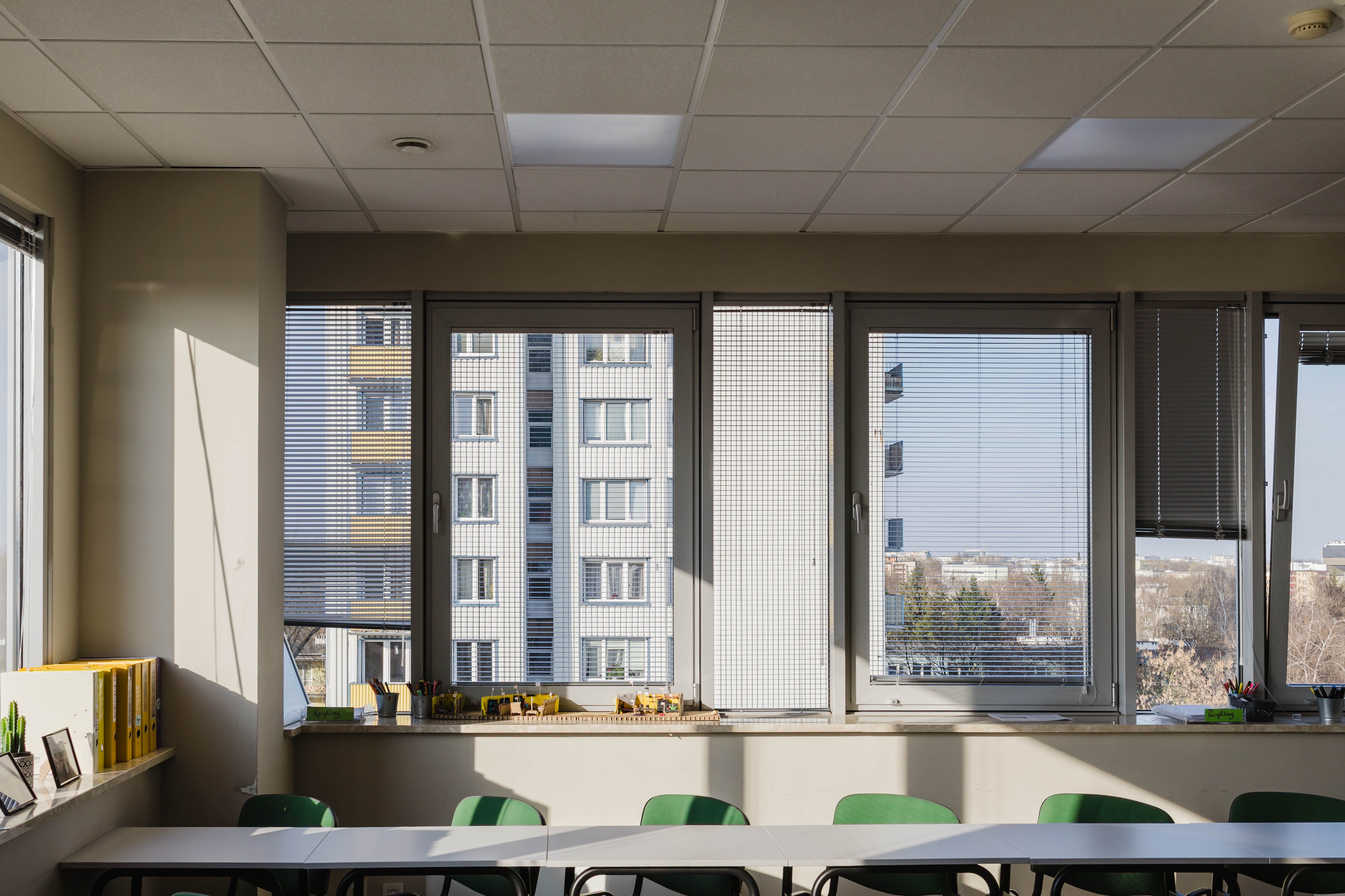 Sala wyposażona w system audio i materiały językowe do nauki angielskiego, niemieckiego i hiszpańskiego.
